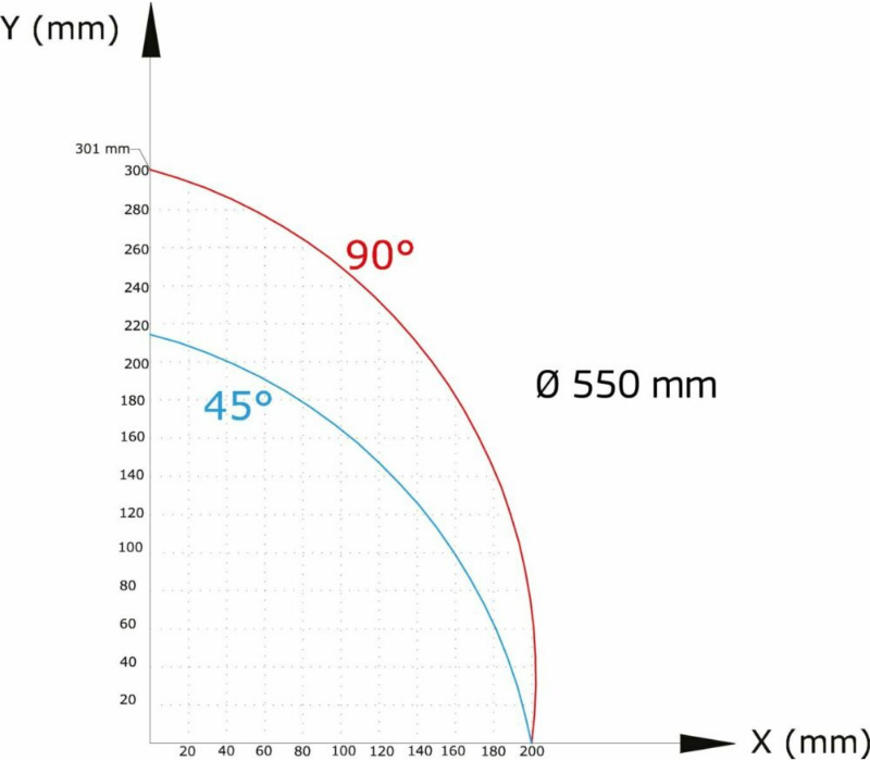 Maksymalna długość cięcia wynosi 5 000 mm bez zmiany położenia profilu. Dłuższe elementy można ciąć poprzez automatyczne przestawianie profilu. Minimalna długość cięcia przy obu głowicach ustawionych na 90° wynosi 550 mm. Do cięcia krótszych elementów przewidziano automatycznie wysuwany ogranicznik.