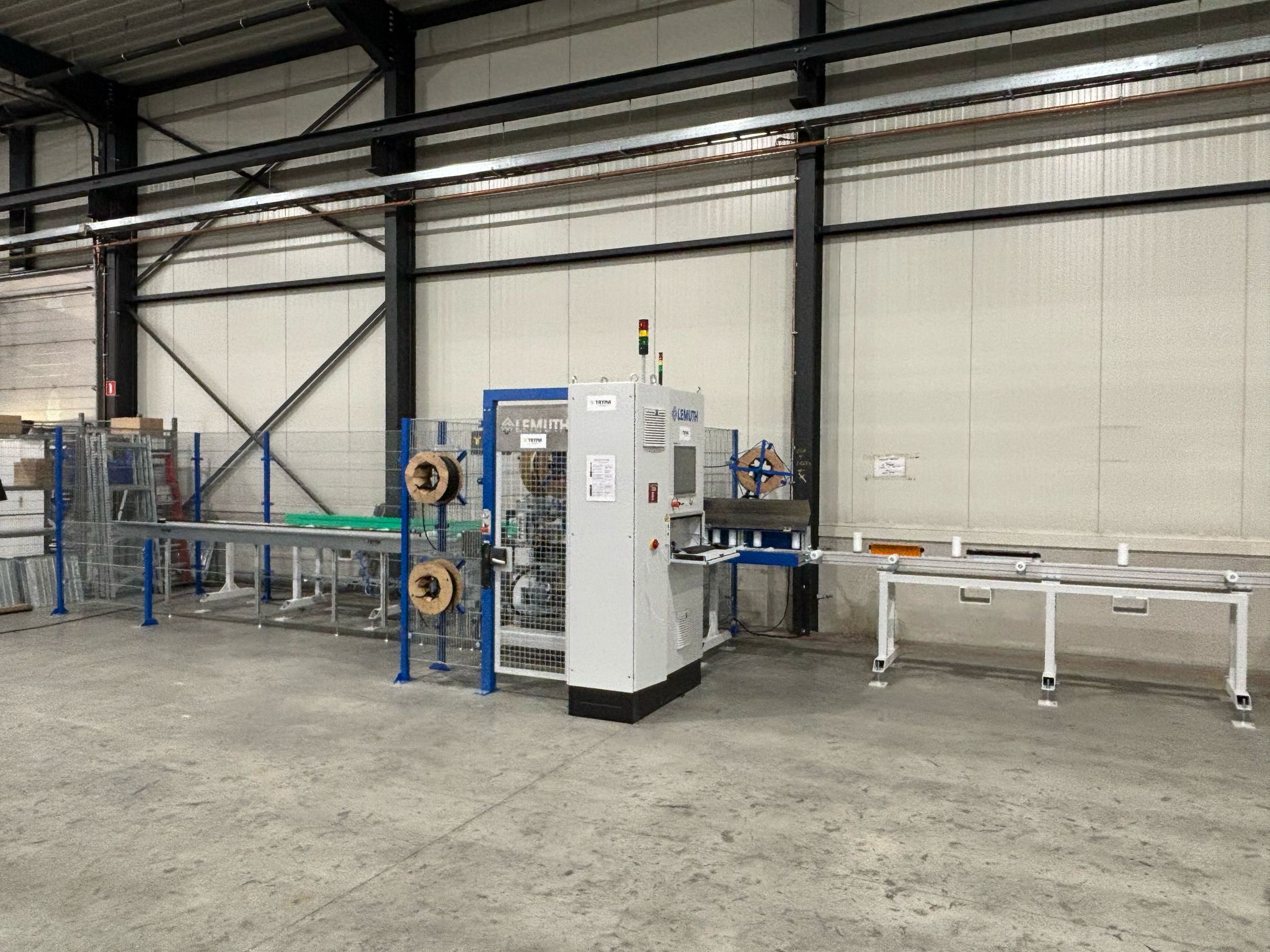 Maszyna do automatycznego i jednoczesnego wprowadzania zarówno uszczelki szybowej, jak i akustycznej w profilach okiennych i drzwiowych wykonanych z PCV, aluminium lub drewna. Maszyna może być wyposażona w wiele głowic do wprowadzania różnych typów uszczelek. Ustawienia są w pełni automatyczne po wprowadzeniu typu profilu na panelu sterowania maszyny. Guma jest zaciskana pod kątem, co zapewnia prawidłowe osadzenie uszczelki w rowku. Na końcu profilu uszczelki są automatycznie cięte. Gotowe profile są następnie wyładowywane na przenośnik rolkowy lub stół buforowy.